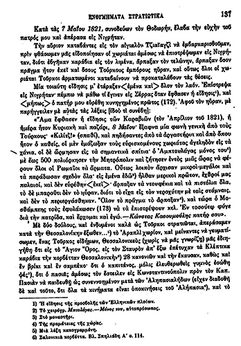 Η στοιχειώδης ιστορική έρευνα θα οδηγούσε τον αναγνώστη στα «Ενθυμήματα Στρατιωτικά» του Νικόλαου Κασομούλη όπου θα έβλεπε στην σελ. 135 ότι ο Κώνστας, πατέρας του Κασομούλη, «...επείσθη να προκαταλάβη το μοναστήριον Ηλιόκαλην έξωθεν των Σερρών και να συλλέξη στρατιώτας, παλαιούς φυγάδας και να τους βαστά έως να έλθη η ώρα. Πρόθυμος ο πατήρ μου εις τα τοιαύτα, και τίποτες άλλο δεν εφρόντιζεν παρά πώς να οχυρώση το μοναστήριον και πόθεν μέλλουν να κινηθούν...».