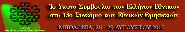 Από τις 26 έως και τις 29 Αυγούστου του «2010» διεξήχθη στην Μπολώνια της Ιταλίας το 13ο «Παγκόσμιο Συνέδριο Εθνικών Θρησκειών» («World Congress of Ethnic Religions», WCER), το οποίο είχε ως θέμα του τα «αρχαία έθη στον σύγχρονο κόσμο» και οργανώθηκε από την ιταλική οργάνωση «Gentilitas - Spiritualita Italica» με την επικουρία των «Federazione Pagana», «Movimento Tradizionalista Romano» και «Associazione Traditionale Pietas».