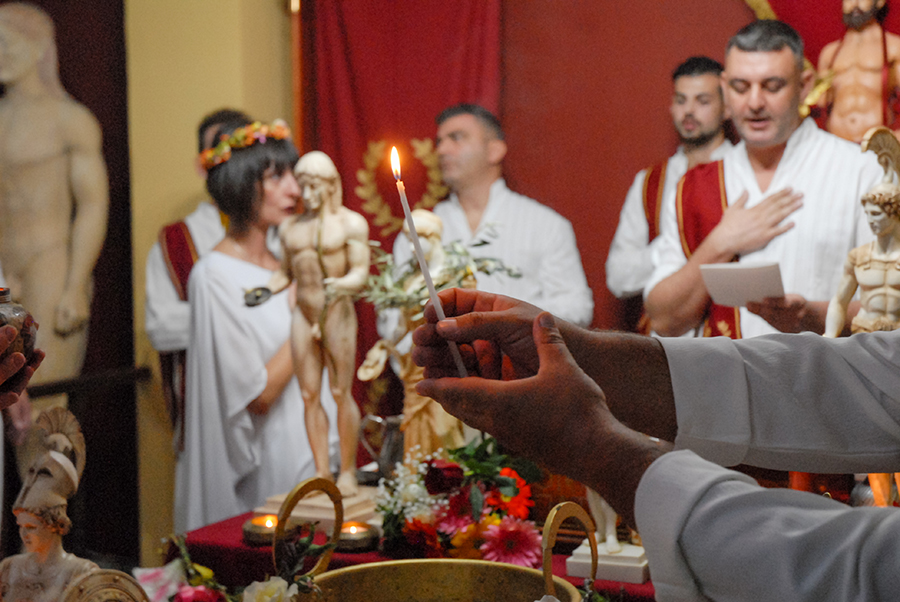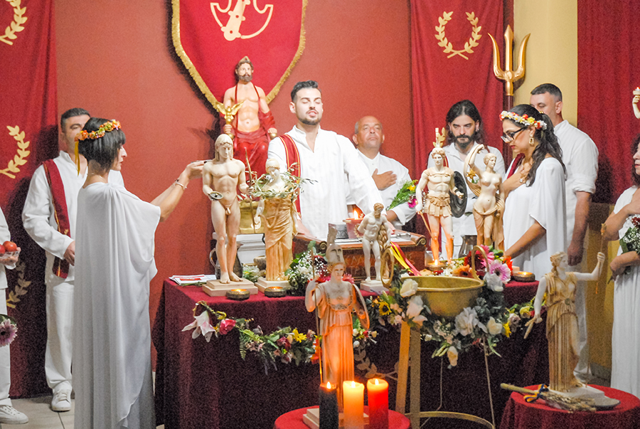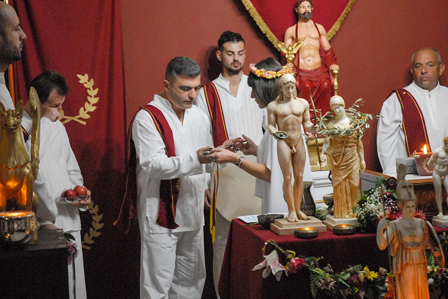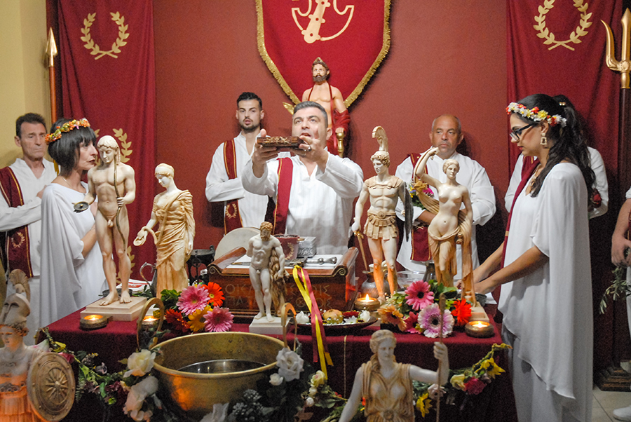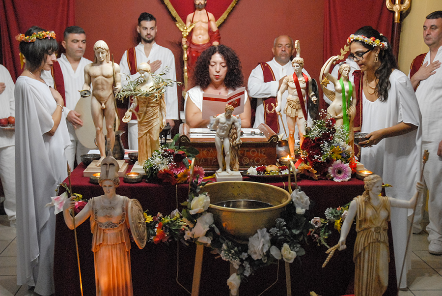 Το Σάββατο 11 Οκτωβρίου, η Ελληνική Εθνική Θρησκεία εόρτασε, με την αρμόζουσα Ιερότητα και Ευσέβεια, τα Ηράκλεια στον αδειοδοτημένο Ναό της στην Αθήνα, προς τιμήν του ηλιακού θεού Ηρακλέους. Ο φωτεινός και ενεργός βωμός κοσμούνταν από τα δώρα των αδελφών μας από τις ευρωπαϊκές εθνικές θρησκείες που μας τίμησαν με την παρουσία τους στο Ευρωπαϊκό Συνέδριο Εθνικών Θρησκειών.