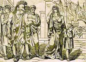 Η μητέρα του Κλεομένους Κρατησίκλεια αναχωρούσα υπερηφάνως για την Αίγυπτο (φανταστική απεικόνιση του Ιταλού Bartolomeo Pinelli στο «Storia Greca Antica», 1809)