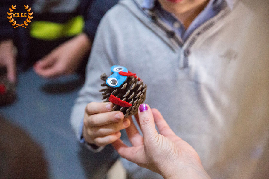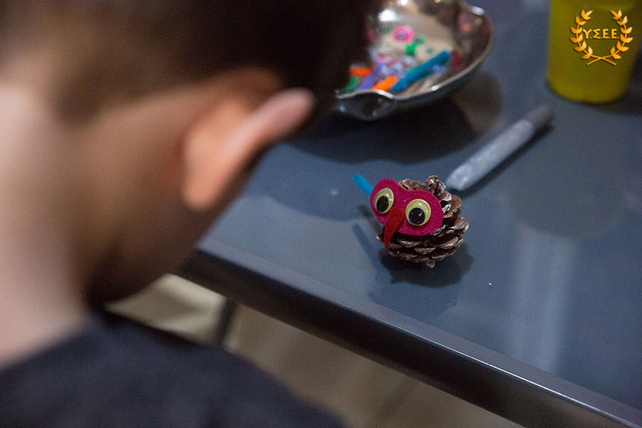 Επίσης, κατασκευάσαμε κουκουβάγιες για να στολίσουν το εορταστικό μας δέντρο.