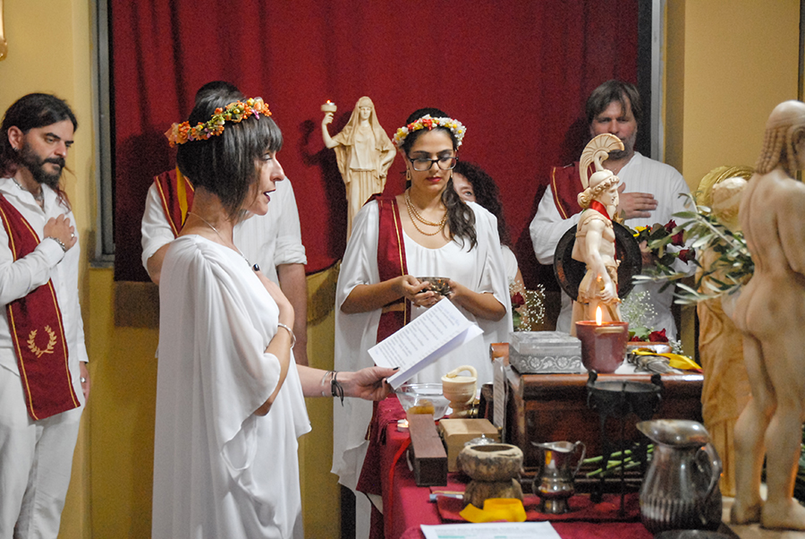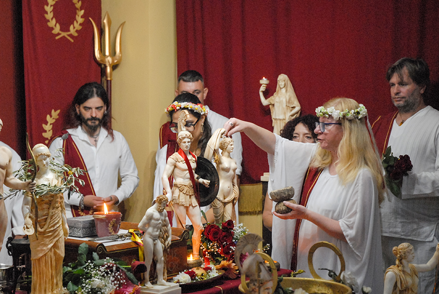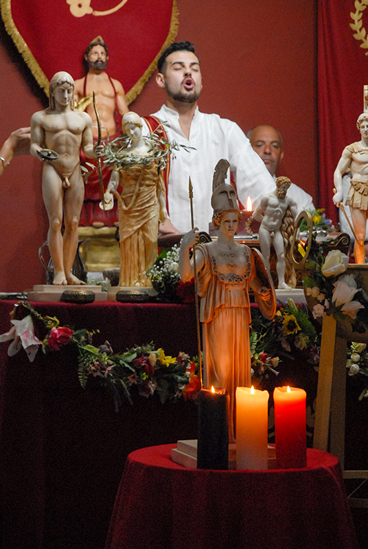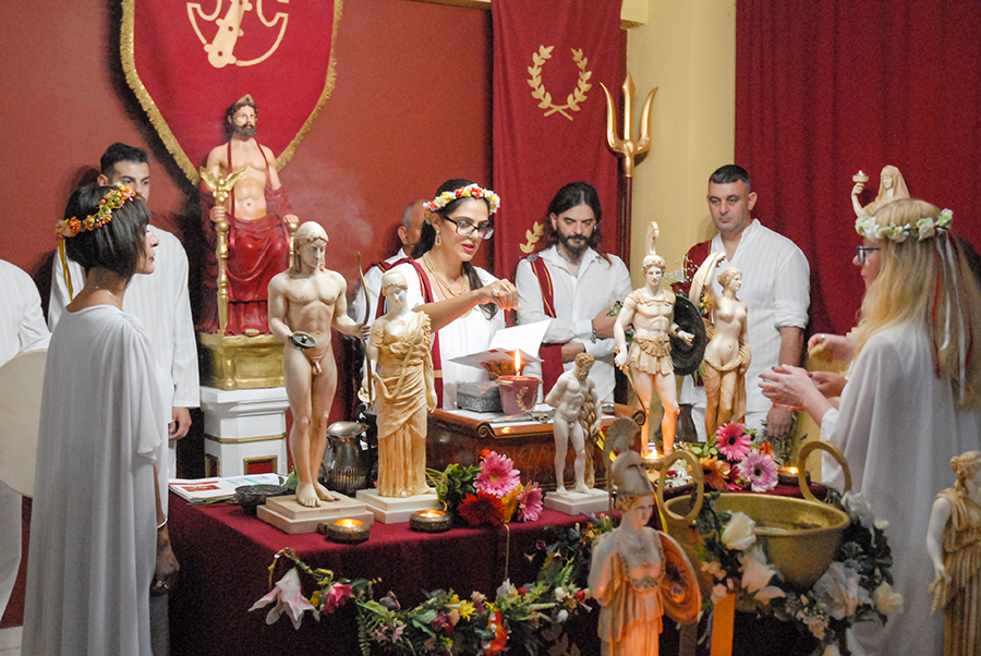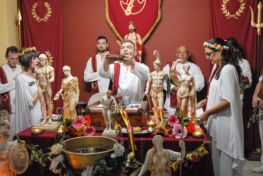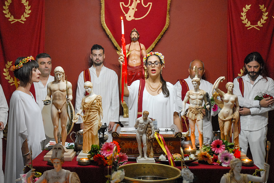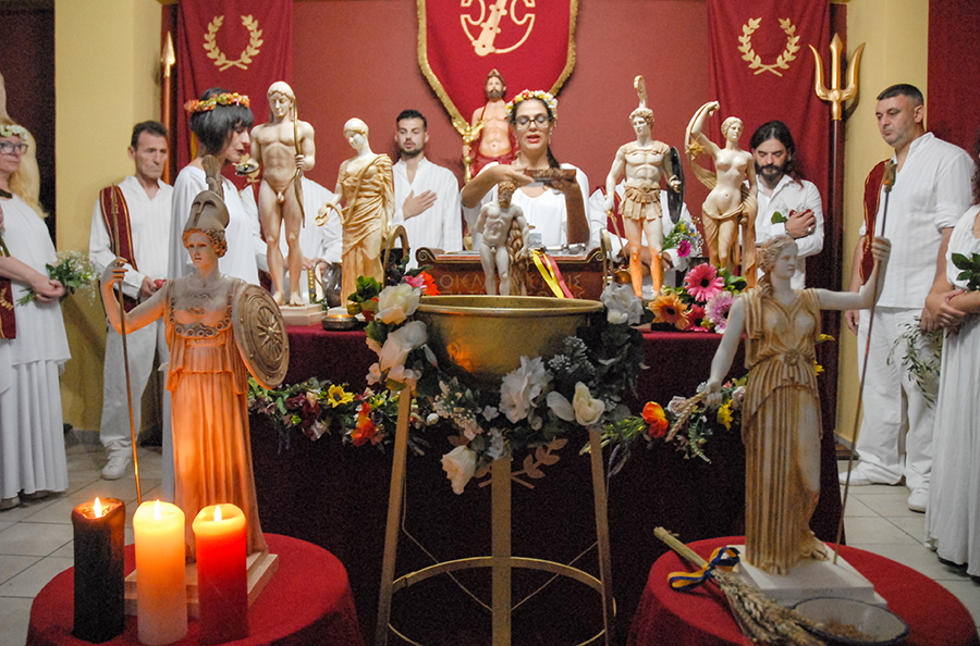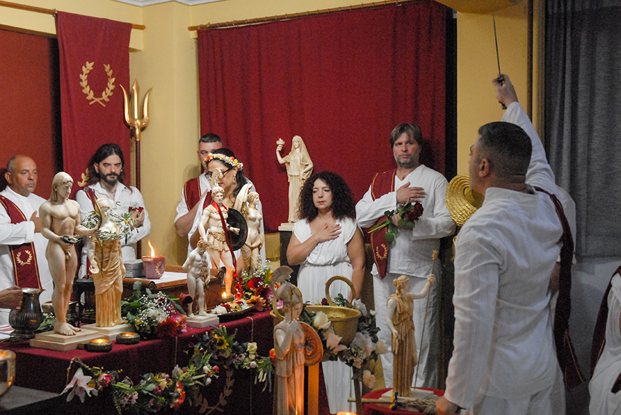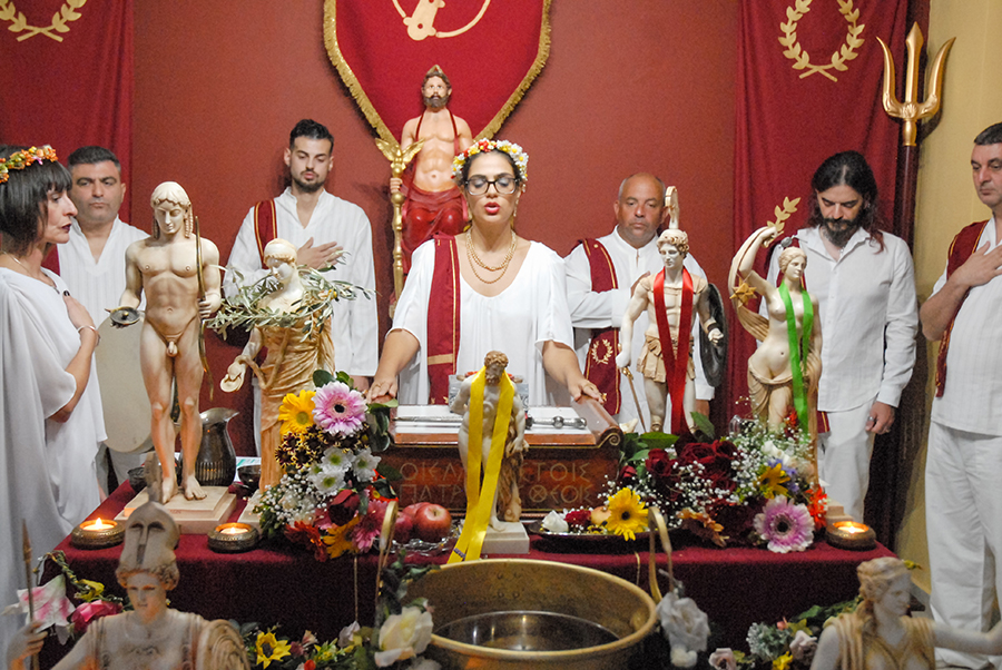 Το Σάββατο 11 Οκτωβρίου, η Ελληνική Εθνική Θρησκεία εόρτασε, με την αρμόζουσα Ιερότητα και Ευσέβεια, τα Ηράκλεια στον αδειοδοτημένο Ναό της στην Αθήνα, προς τιμήν του ηλιακού θεού Ηρακλέους. Ο φωτεινός και ενεργός βωμός κοσμούνταν από τα δώρα των αδελφών μας από τις ευρωπαϊκές εθνικές θρησκείες που μας τίμησαν με την παρουσία τους στο Ευρωπαϊκό Συνέδριο Εθνικών Θρησκειών.
