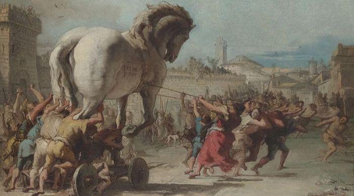 “The Procession of the Trojan Horse in Troy” by Giovanni Domenico Tiepolo. From WikiMedia.